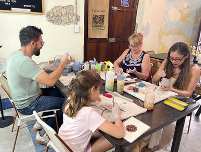 Durante el taller podrás pintar y modelar con pasta cerámica tus decoraciones. Te incluye una pieza pre-hecha para trabajar, materiales, engobes, herramientas, quemas y esmaltado de piezas. (minimo 5 personas)