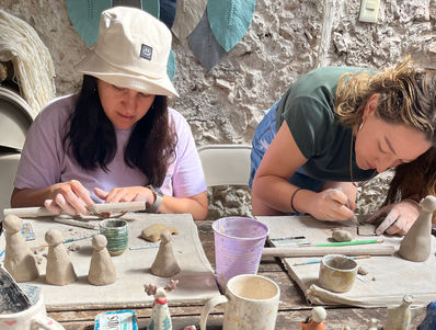Durante el taller podrán modelar una pieza libre utilizando pasta cerámica blanca. Te incluye engobes para pintar y decorar las piezas, herramientas de trabajo, quemas y esmaltado. (minimo 5 personas)