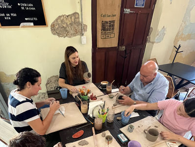 Durante el taller podrás pintar y modelar con pasta cerámica tus decoraciones. Te incluye una taza pre-hecha para trabajar, materiales, engobes, herramientas, quemas y esmaltado de piezas. (minimo 5 personas)